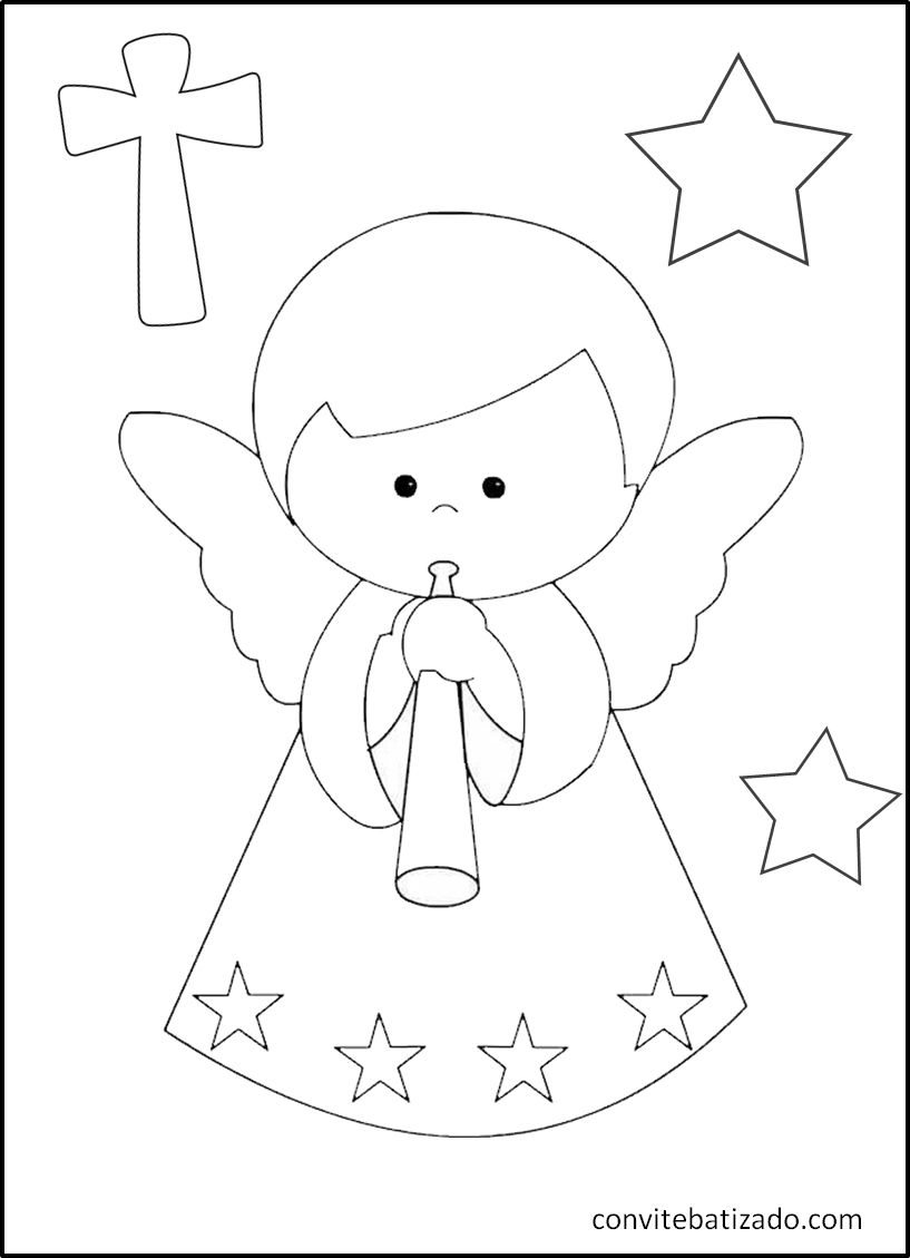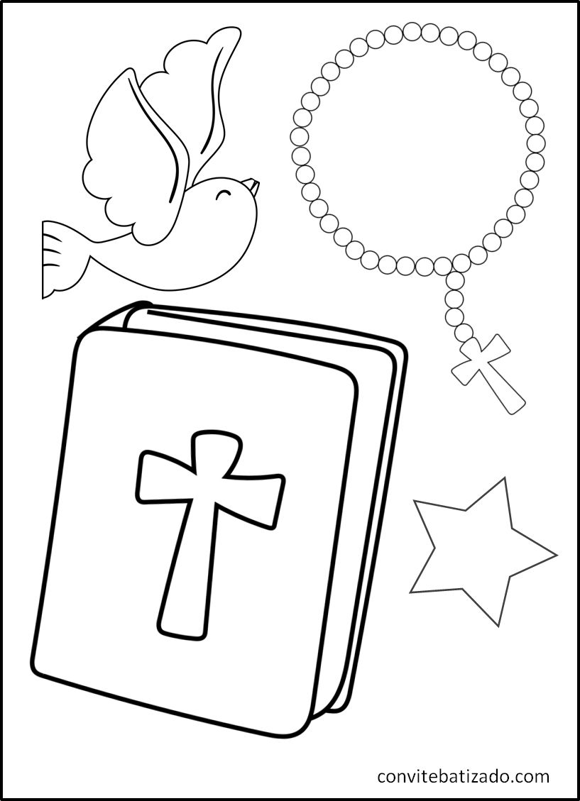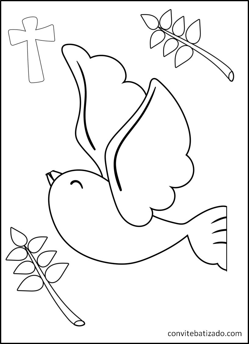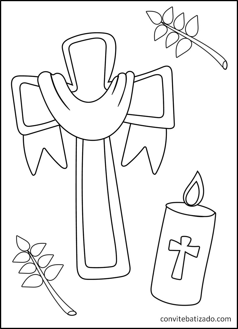 Baixe grátis desenhos de batizado para colorir 🎨. Imprima imagens religiosas de anjinhos, pombas e cruzes para crianças e atividades escolares.
