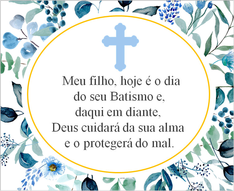 12. Meu filho, hoje é o dia do seu batismo e, daqui em diante, Deus cuidará da sua alma e o protegerá do mal.