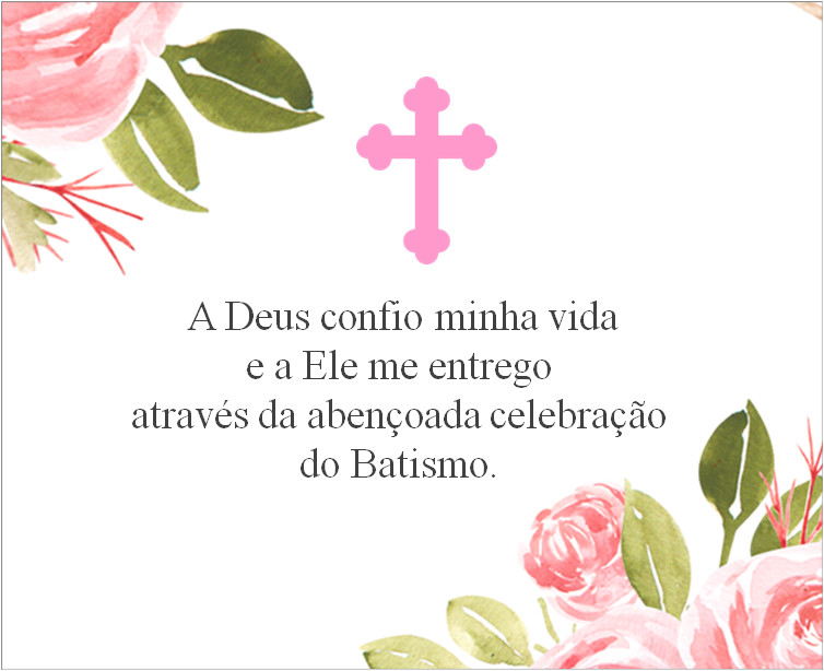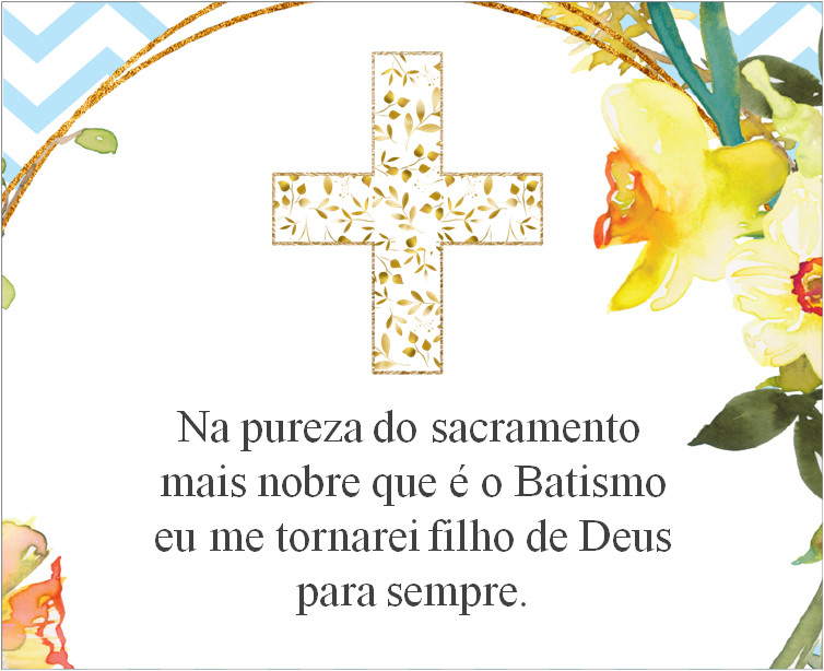 15. Hoje você recebe o sacramento do batismo e em paz se inicia sua caminhada ao lado de Deus!
